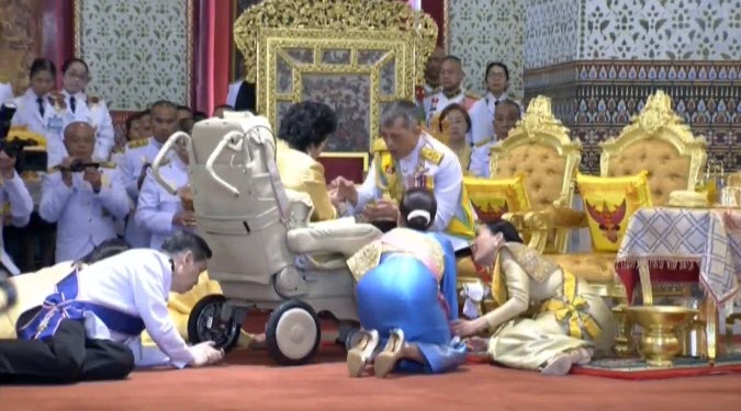 ระหว่างนั้น สมเด็จพระนางเจ้าสุทิดา พัชรสุธาพิมลลักษณ พระบรมราชินี ทรงประทับข้าง สมเด็จพระเจ้าลูกเธอ เจ้าฟ้าพัชรกิติยาภา นเรนทิราเทพยวดี ทรงก้มกราบ พระเจ้าวรวงศ์เธอ พระองค์เจ้าโสมสวลี กรมหมื่นสุทธนารีนาถ ด้วยความเคารพ นับเป็นพระจริยวัตรงดงามอย่างยิ่ง และเป็นที่ปลื้มปีติแก่พสกนิกรยิ่งนัก